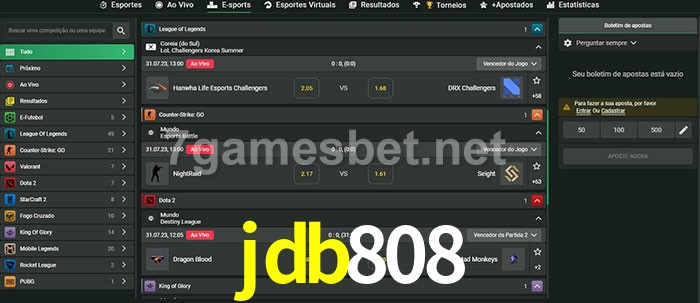 O jdb808 oferece uma grande seleção de opções de apostas em e-sports com probabilidades competitivas